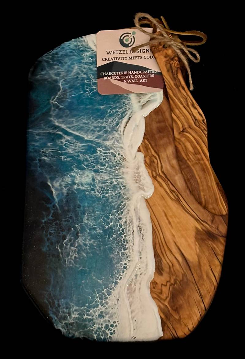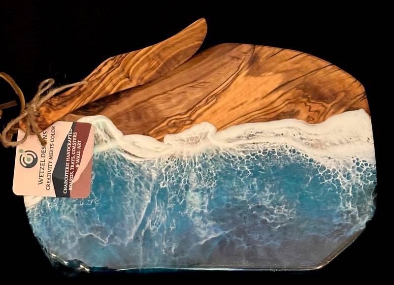 Protected with food-grade natural oil. It can be used as a cutting board or charcuterie tray. Please avoid cutting over the resin area as it could damage the design. Instead, to use as a cutting board, place it on top of a kitchen towel with the design facing down.