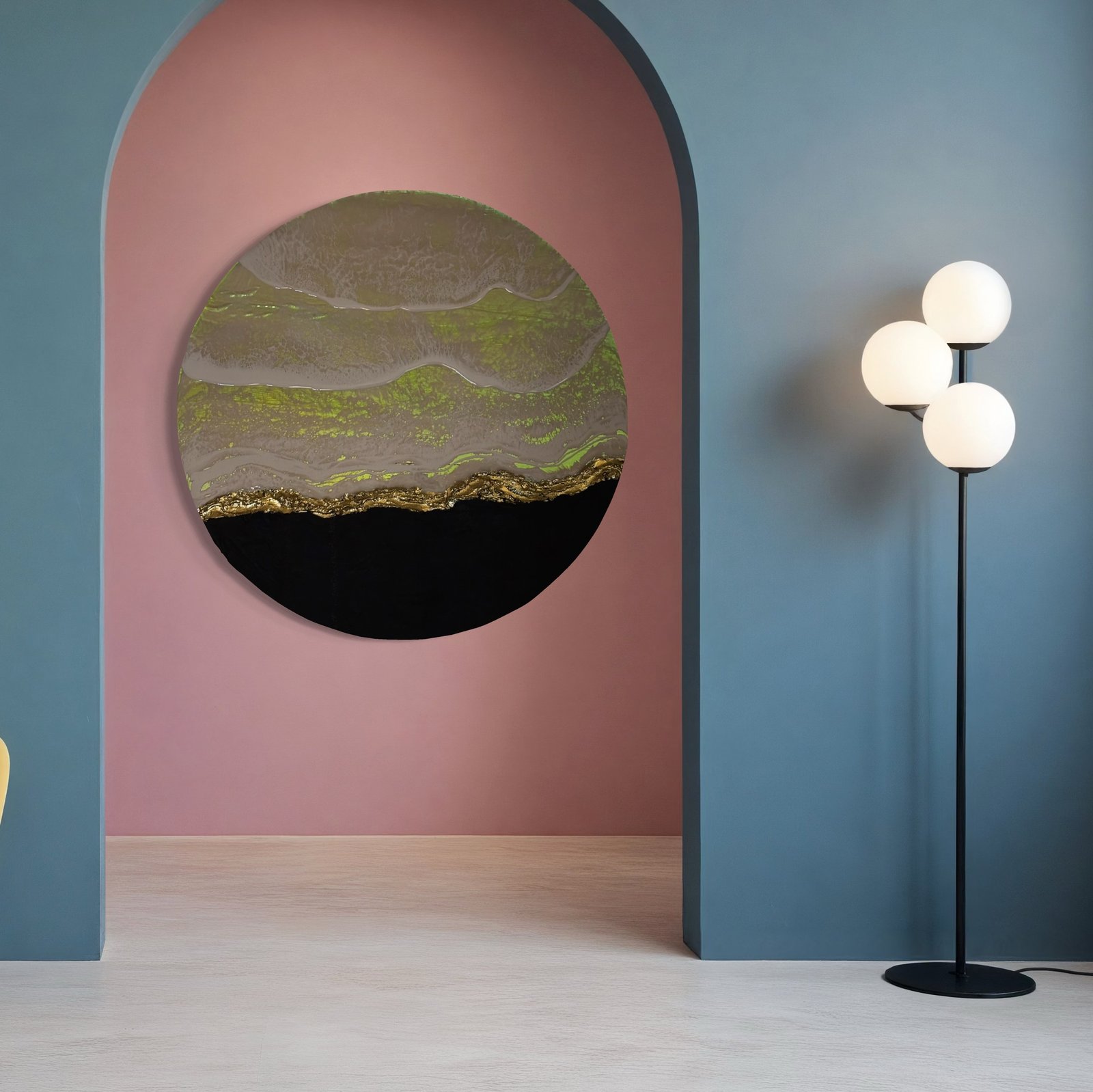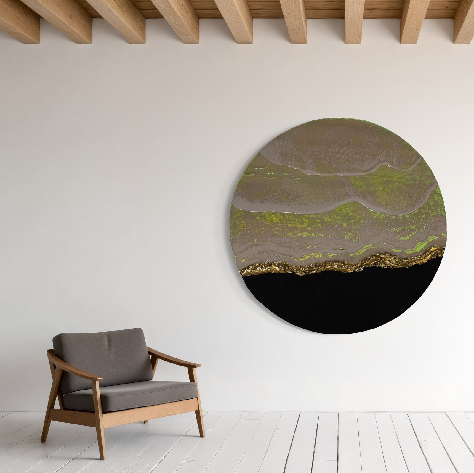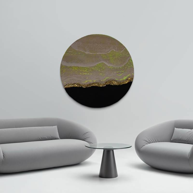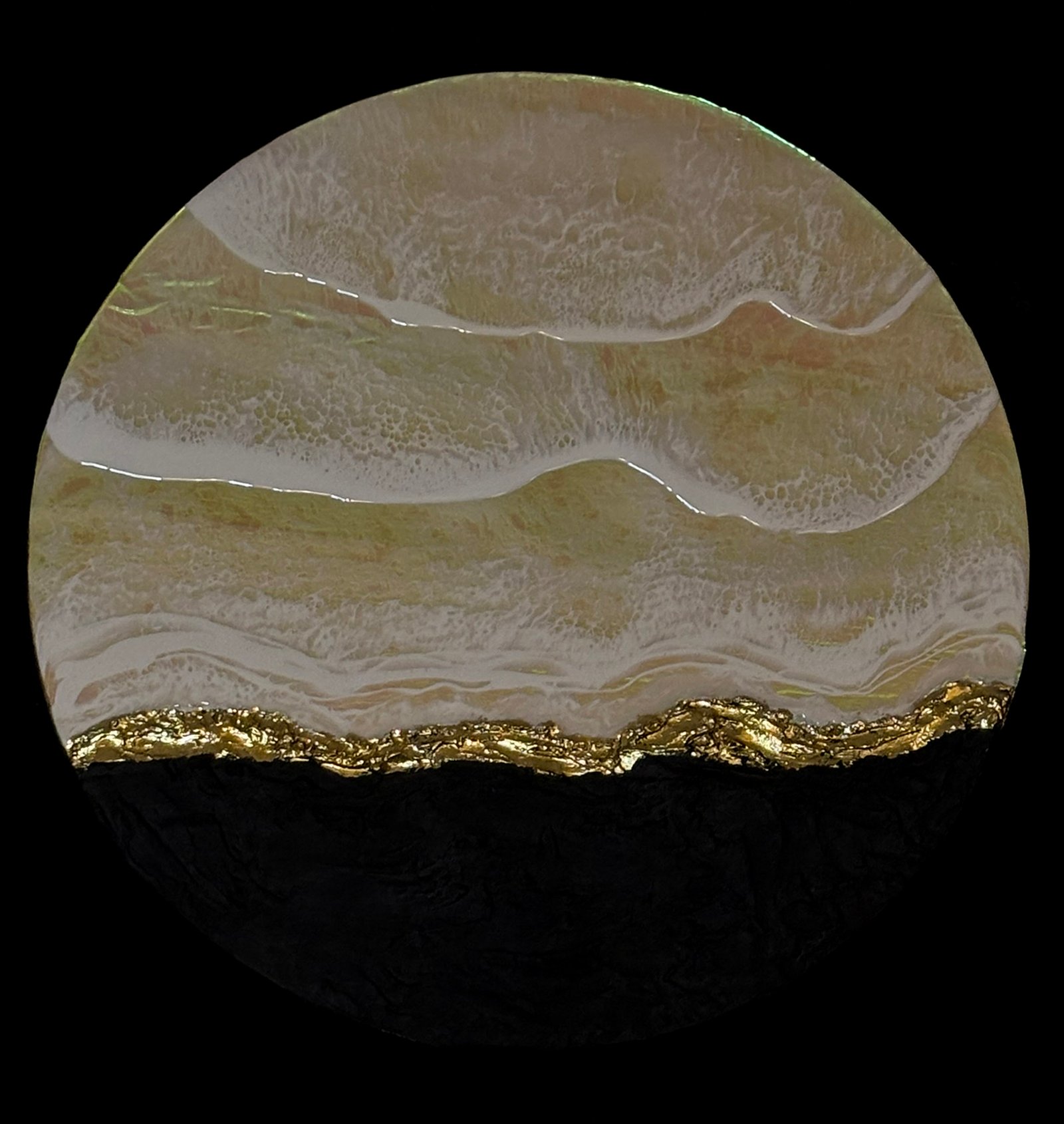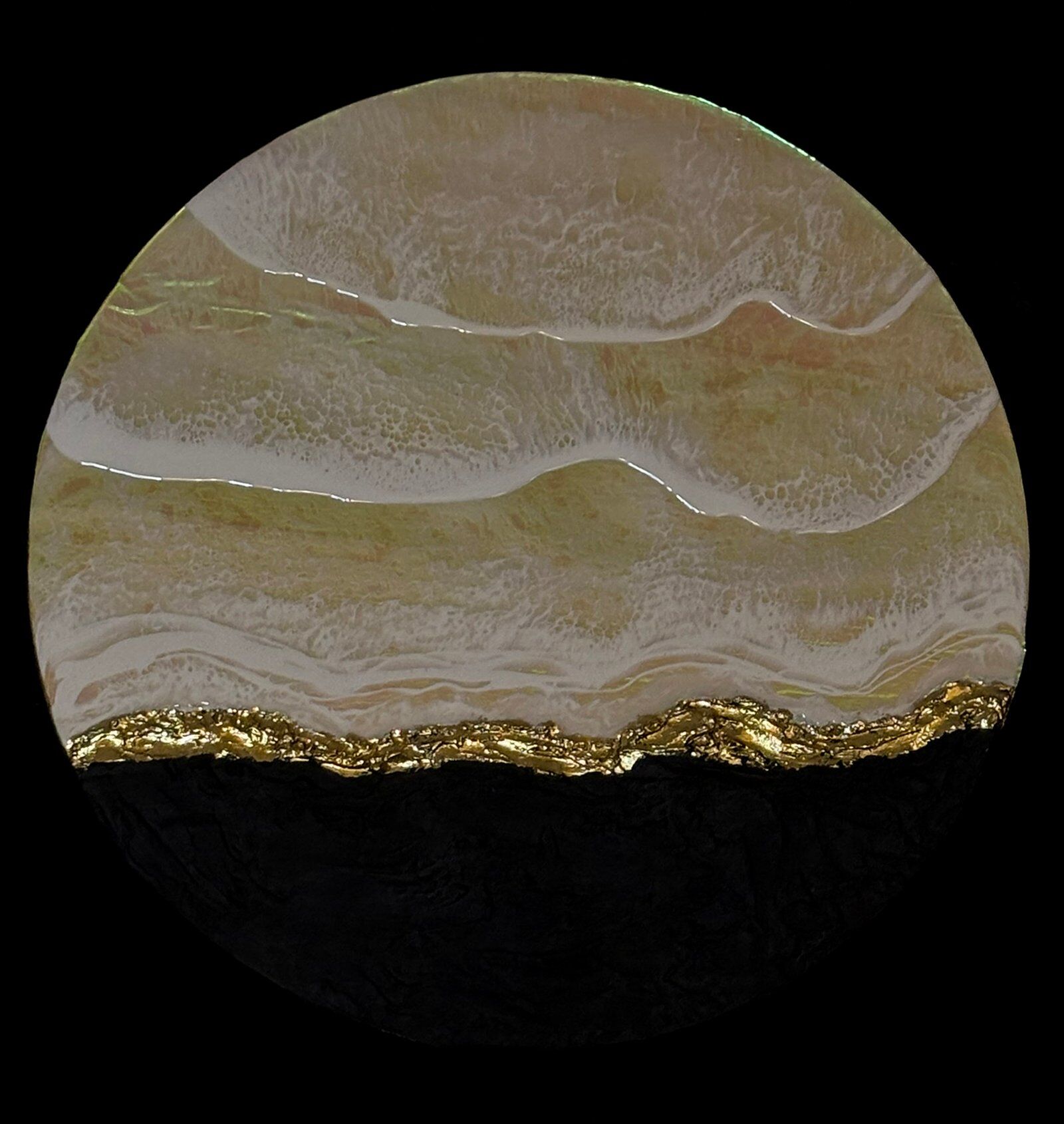 Materials include Acrylic Paint, Epoxy Resin, Australian Pigment Paste, Modeling Texture Paste, Gold Leafing, Musou Black (Deepest Black Paint from Japan) Modeling Matt Varnish.